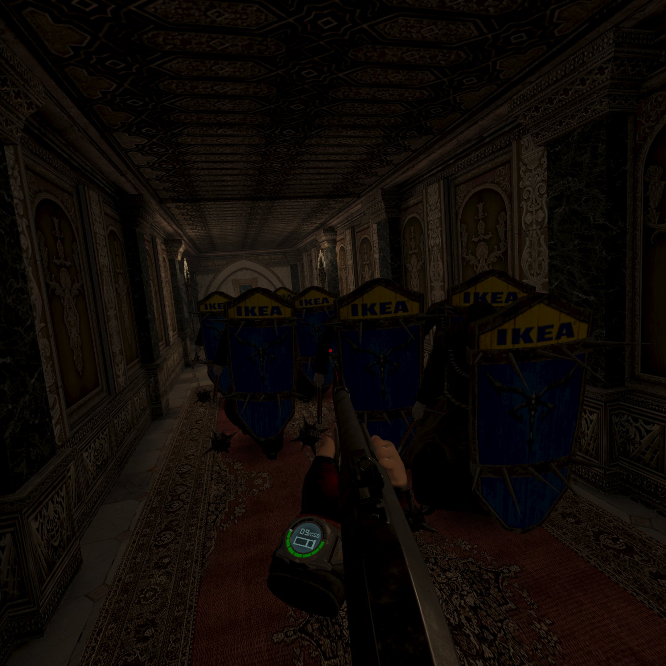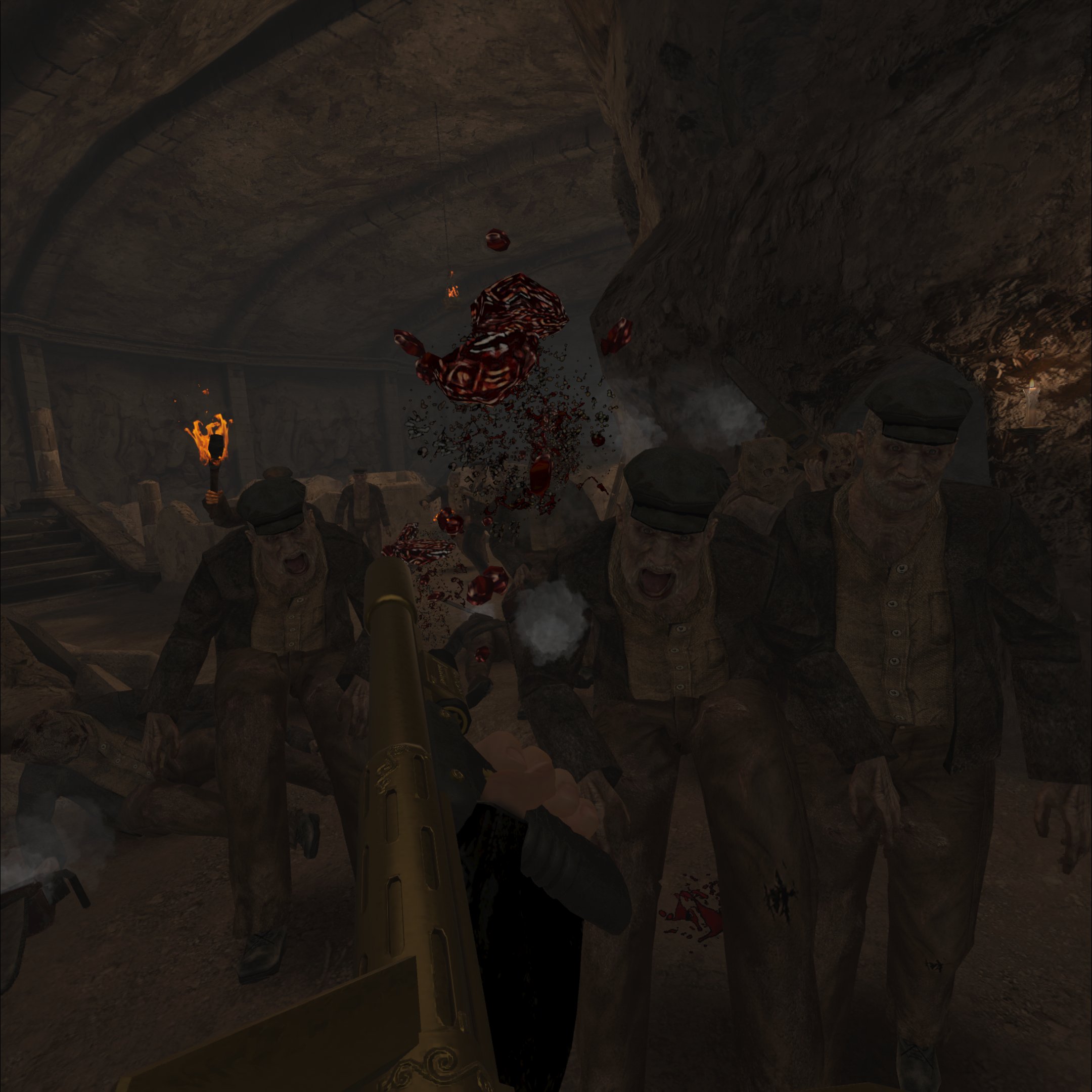 All of the stronger enemies and crazy encounters, custom (generally more hidden) triggers, ammo drops etc are all how you remember them from the original Rising of Evil mod!